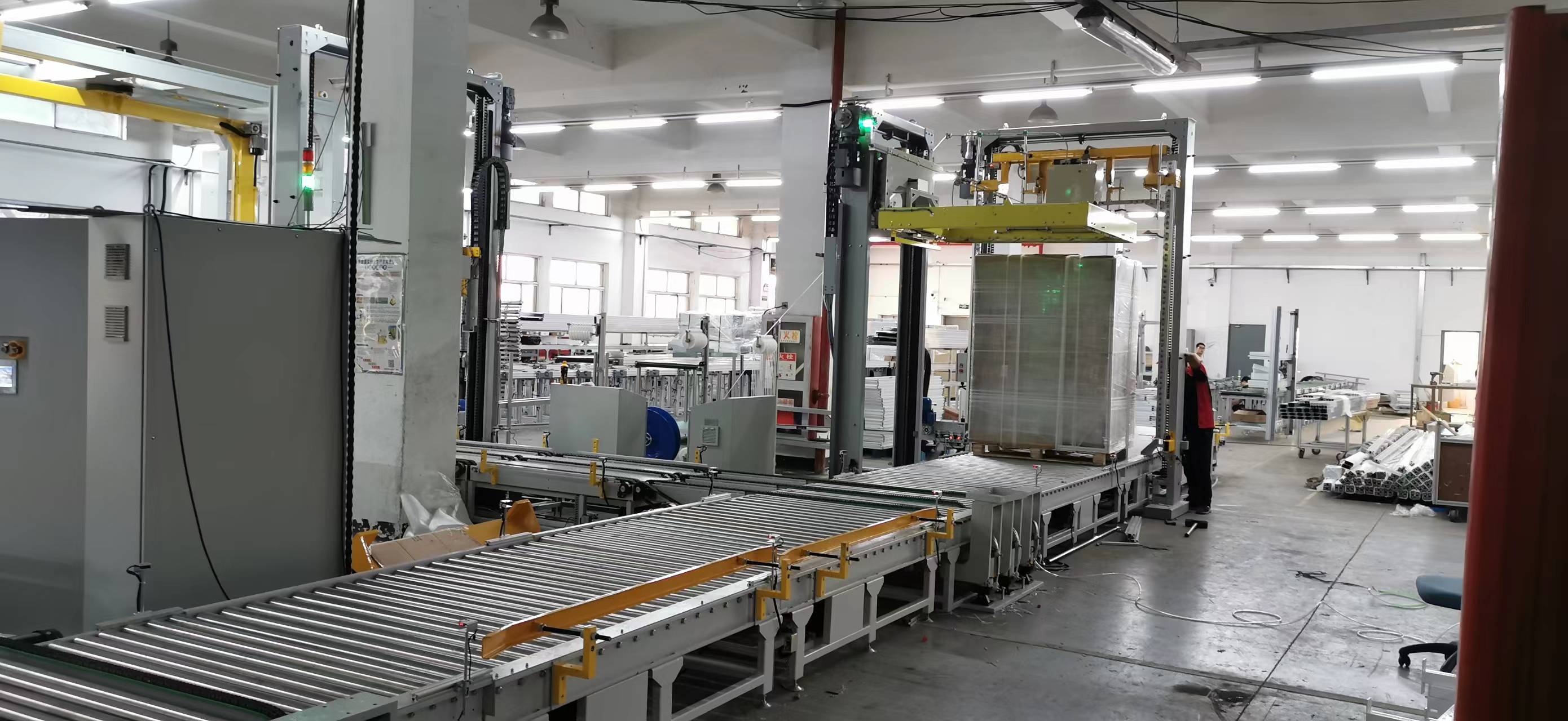 自動(dòng)纏繞機(jī)和打帶機(jī)包裝流水線